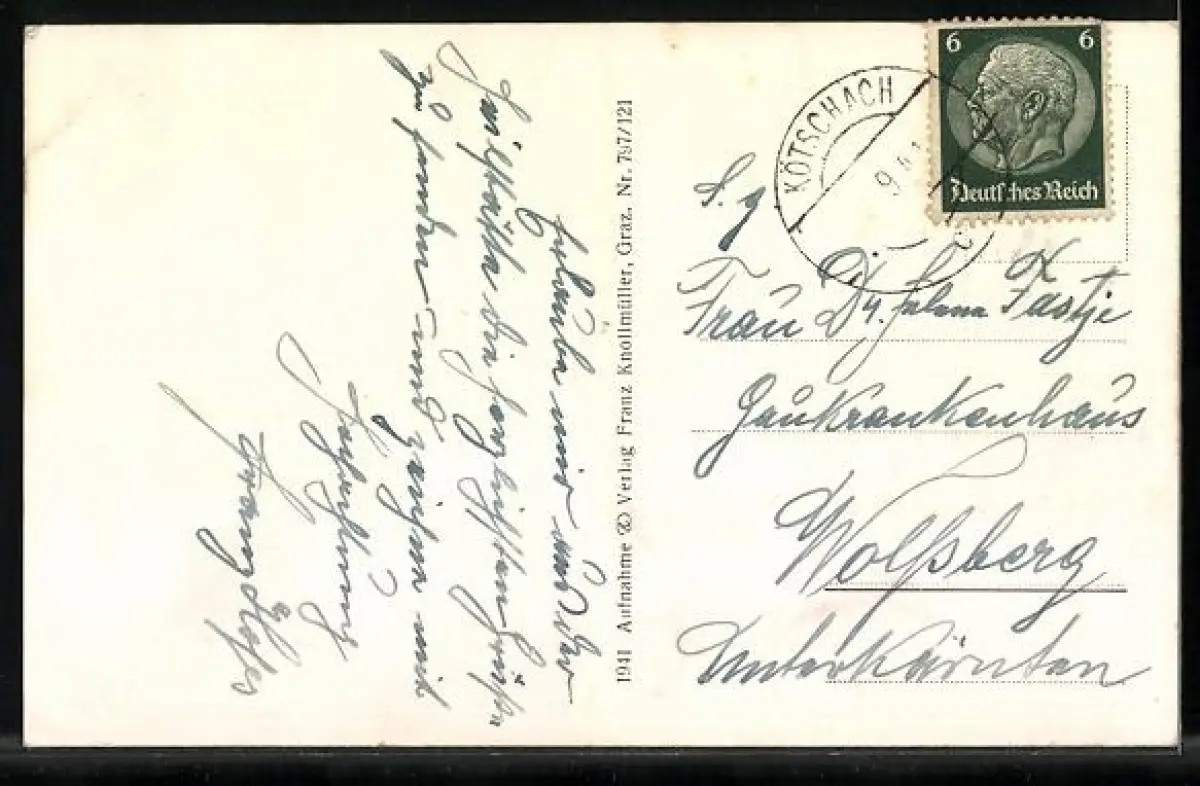 AK Kötschach, Totalansicht vom Berg gesehen