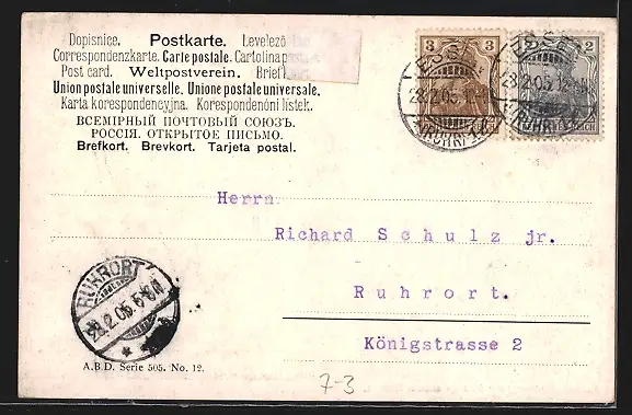 gelaufen 1905, rückseitig Klebe- und Papierreste, guter Zustand