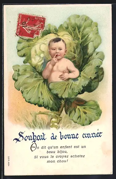 AK Kohlkopf mit darin wachsendem Kleinkind