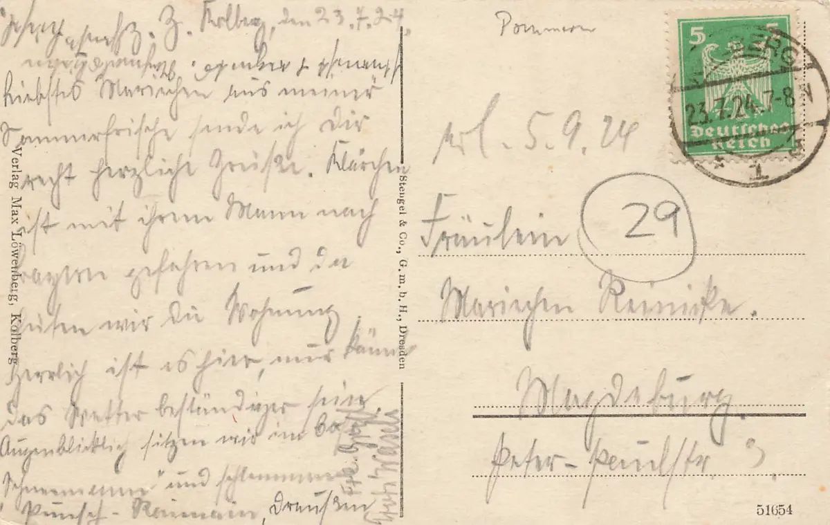 Rückseite: gelaufen 1924