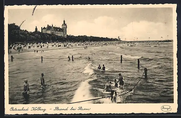 AK Kolberg, Ostseebad, Strand bei Sturm