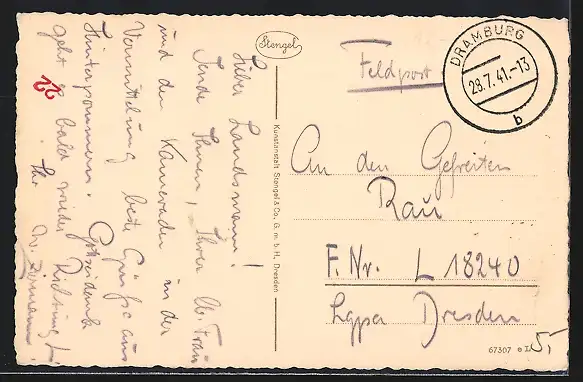 alte Ansichtskarte, gelaufen 1941, Stempelspur, guter Zustand