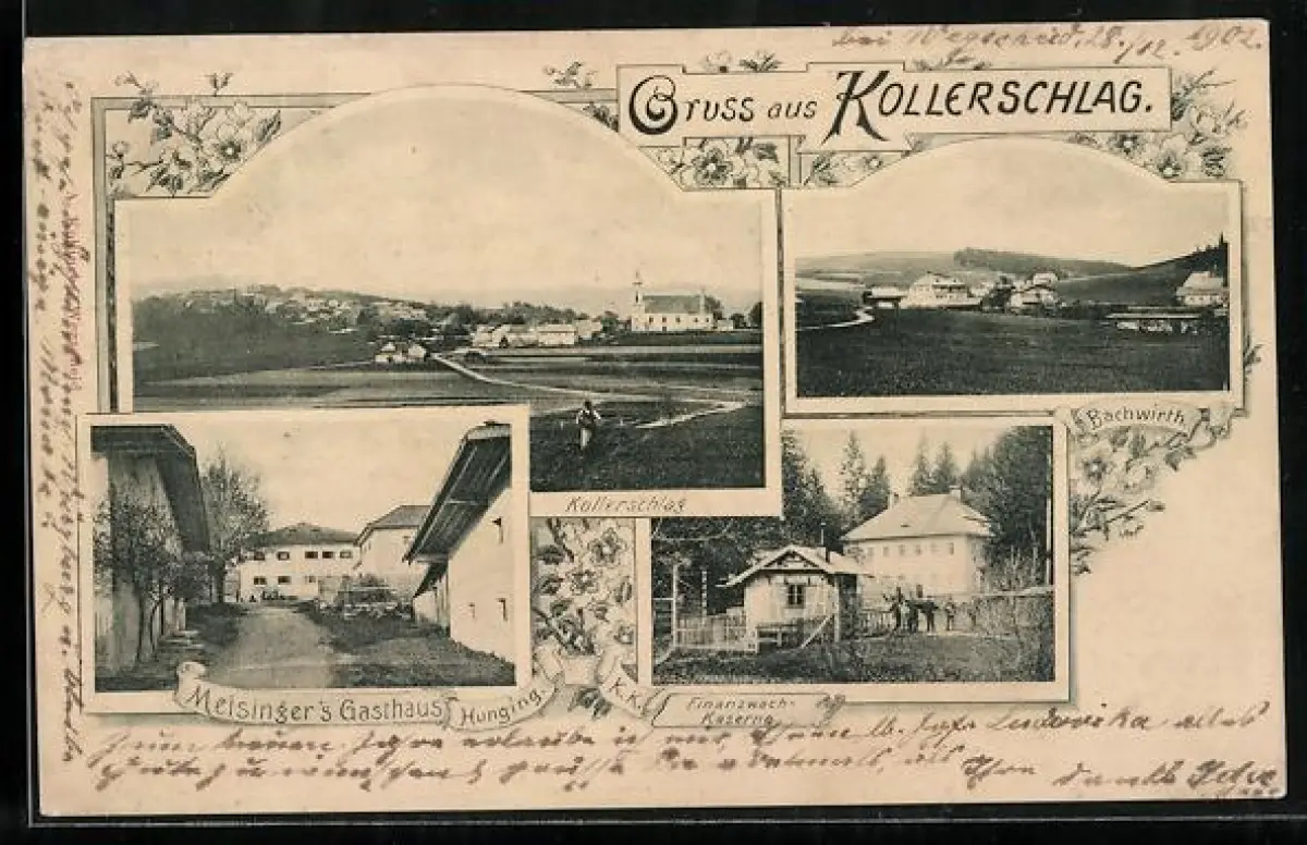 AK Kollerschlag, Meisinger`s Gasthaus Junging, Bachwirth, Finanzwach-Kaserne