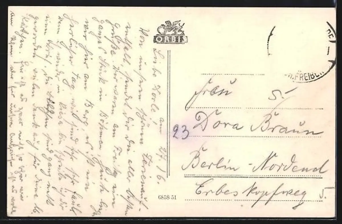 alte Ansichtskarte, gelaufen, Briefmarke entfernt, guter Zustand