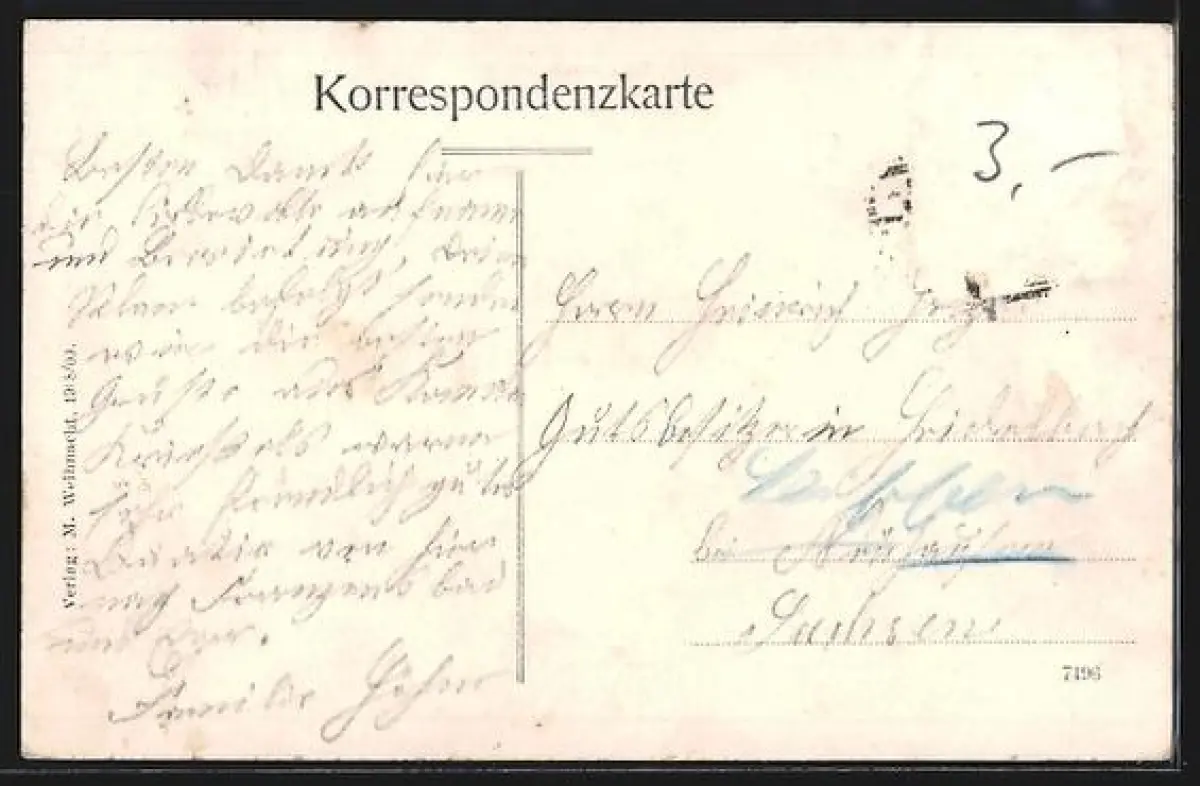 alte Ansichtskarte, gelaufen, Briefmarke entfernt, rückseitig Oberflächenschaden, guter Zustand