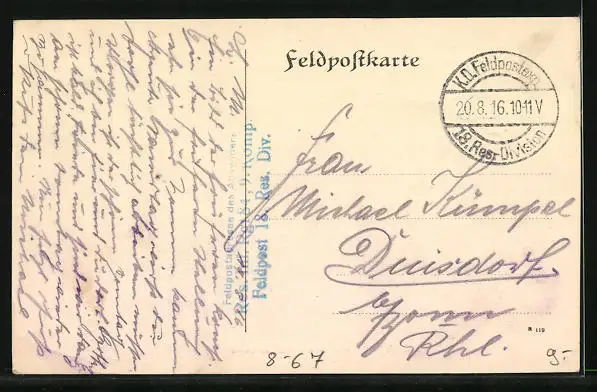 alte Ansichtskarte, gelaufen 1916 als Feldpost, guter Zustand