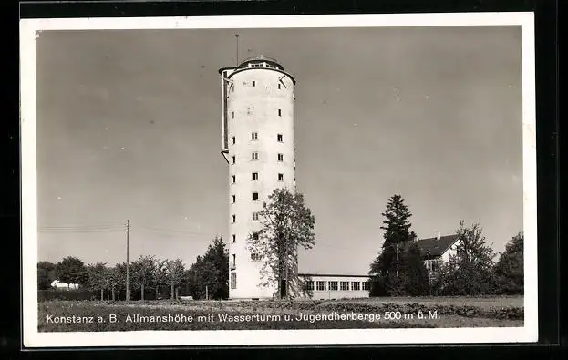 AK Konstanz, Allmanshöhe mit Wasserturm u. Jugendherberge