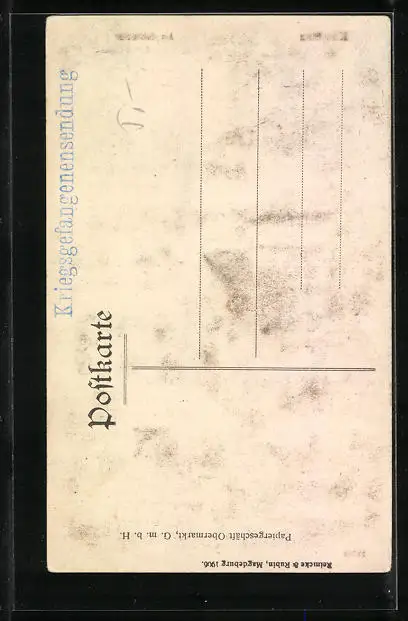 Personenbezogene Daten auf der Rückseite der Karte wurden durch blauen Textmarker unkenntlich gemacht. Die blauen Stellen sind auf die Vorderseite durchgeweicht und wirken sich negativ auf das Postkartenfoto aus