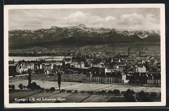 AK Konstanz, Ansicht des Ortes mit Schweizer Alpen