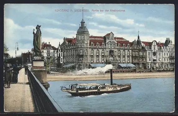 AK Konstanz /Bodensee, Partie bei der Rheinbrücke