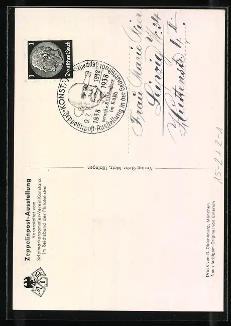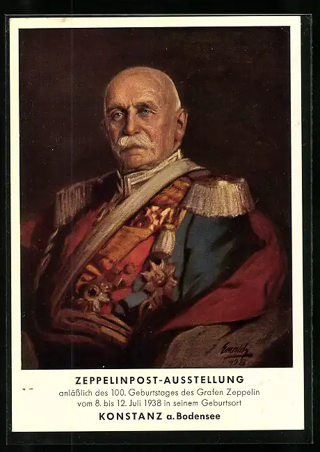 AK Konstanz, Graf Zeppelin, Zeppelinpost-Ausstellung anlässlich des 100. Geburtstag des Grafen Zeppelin, Juli 1938