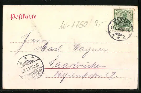 alte Ansichtskarte, gelaufen 1902, guter Zustand