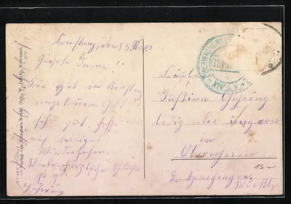 alte Ansichtskarte, gelaufen, Briefmarke entfernt, guter Zustand