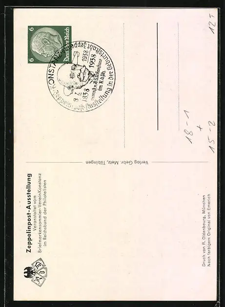 AK Konstanz, Zeppelinpost-Ausstellung 1938, Ferdinand von Zeppelin in Uniform, Ganzsache