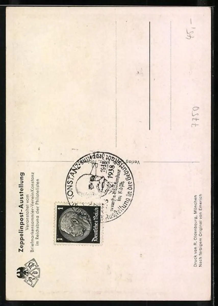 AK Konstanz, Zeppelinpost-Ausstellung, Portrait zum 100. Geburtstag