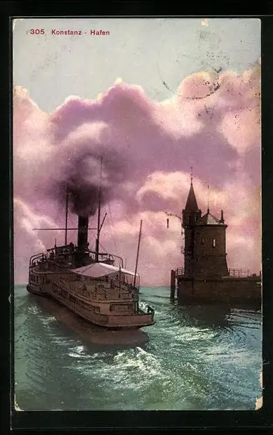 AK Konstanz a. B., Hafenpartie mit Dampfer