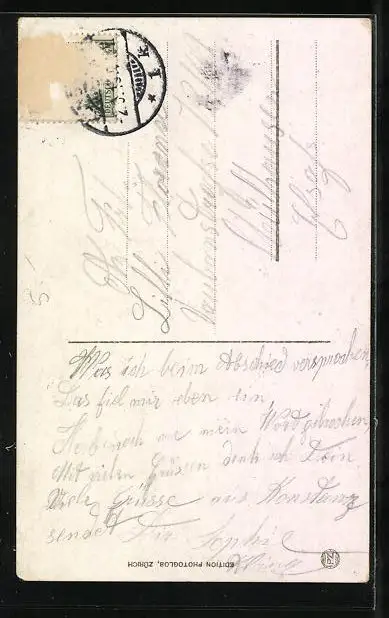 alte Ansichtskarte, gelaufen, Briefmarke entfernt, rückseitig Oberflächenschaden, guter Zustand