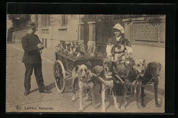 AK Kontrolle einer Milchverkäuferin mit Hundegespann in Flandern