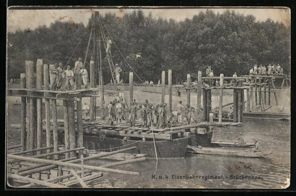 AK Korneuburg, K. u. k. Eisenbahnregiment, Brückenbau, Militärbahn