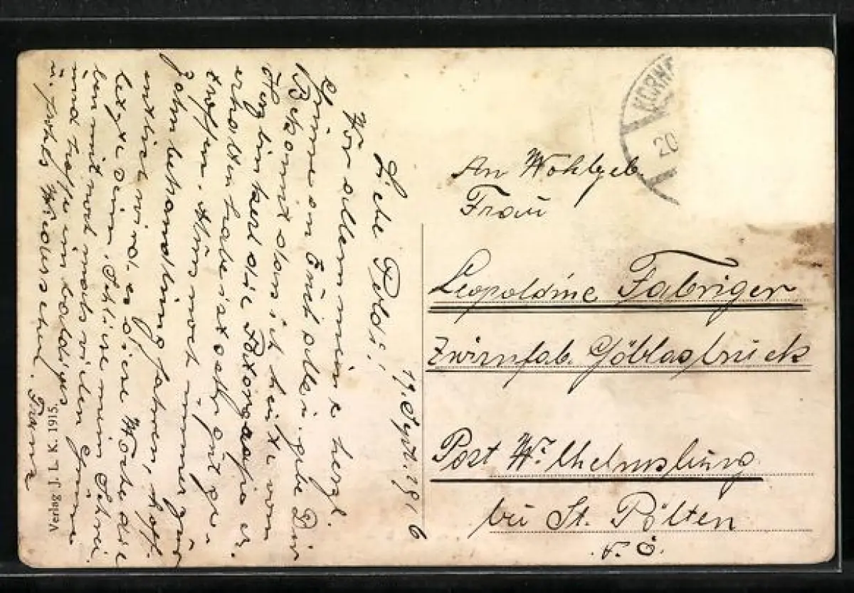 alte Ansichtskarte, gelaufen 1916, Briefmarke entfernt, rückseitig Oberflächenschaden, guter Zustand