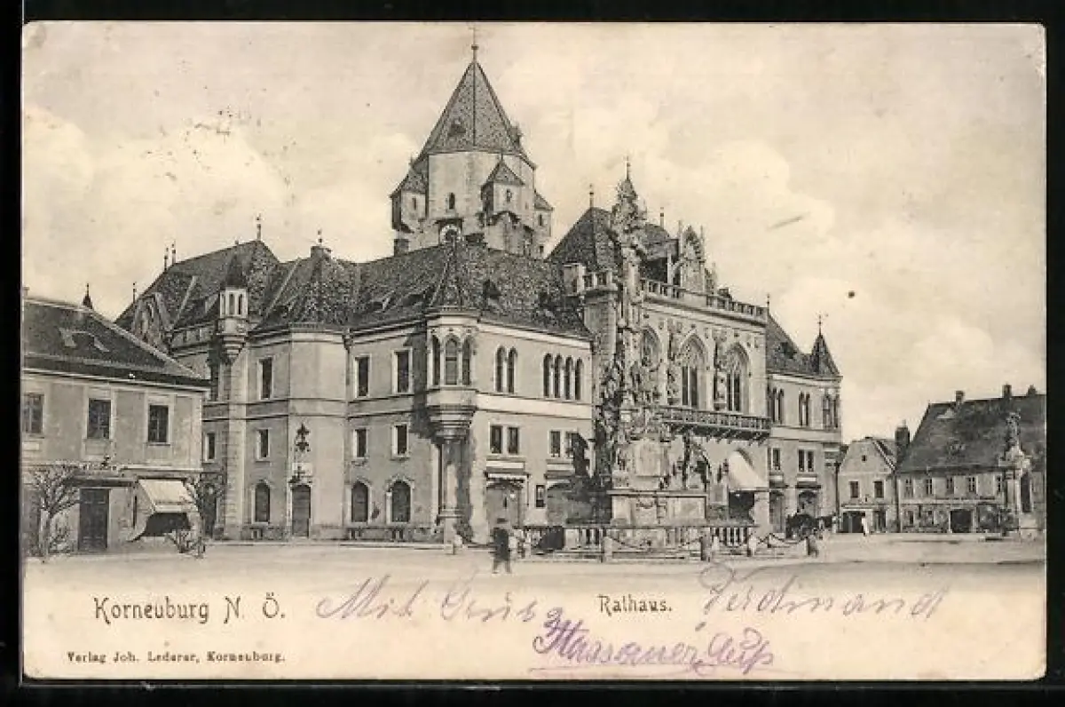 AK Korneuburg /N. Ö., Rathaus mit Säulendenkmal