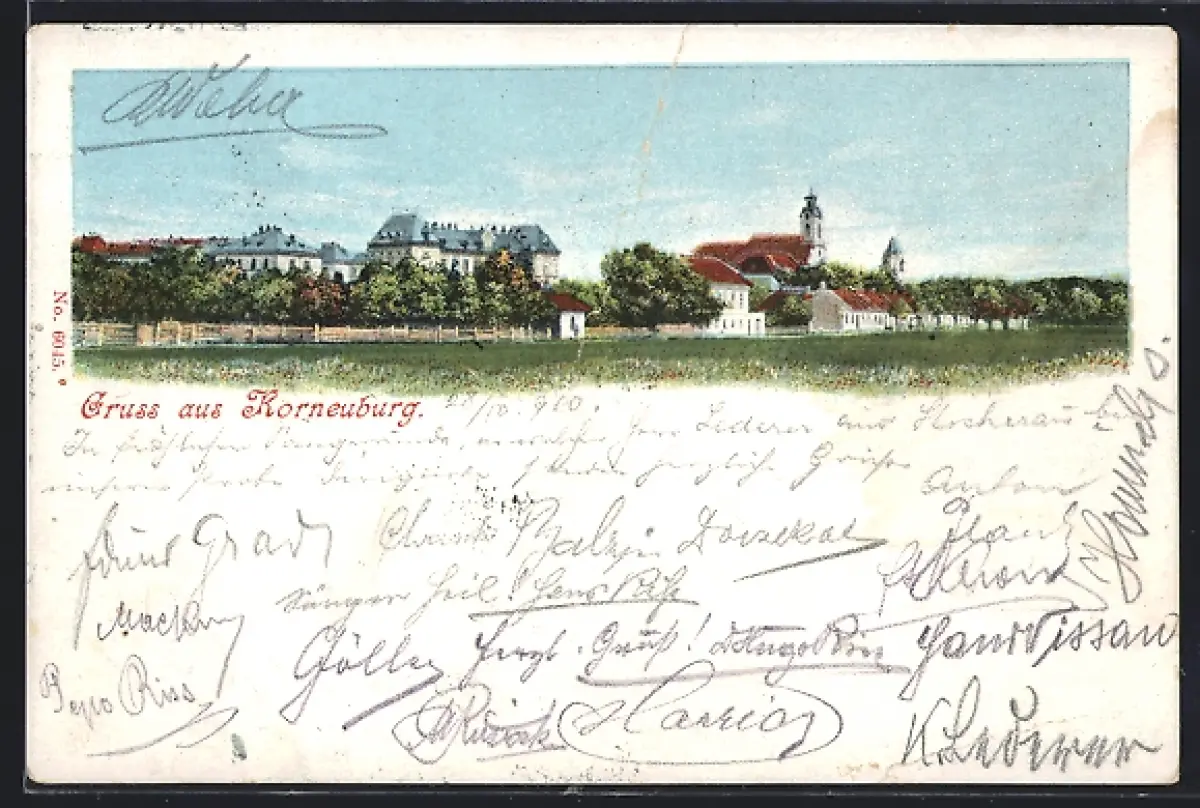 AK Korneuburg, Ortspanorama von einer Wiese aus