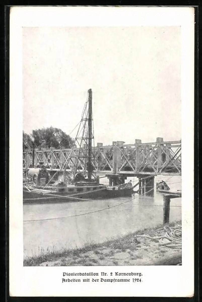 AK Korneuburg, Pionierbataillon Nr. 2, Arbeiten mit der Dampframme 1924, Militärbahn
