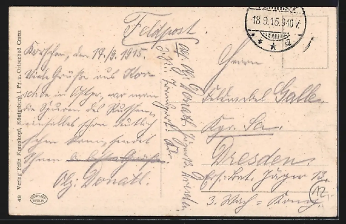 alte Ansichtskarte, gelaufen 1915, Stempelspur, guter Zustand