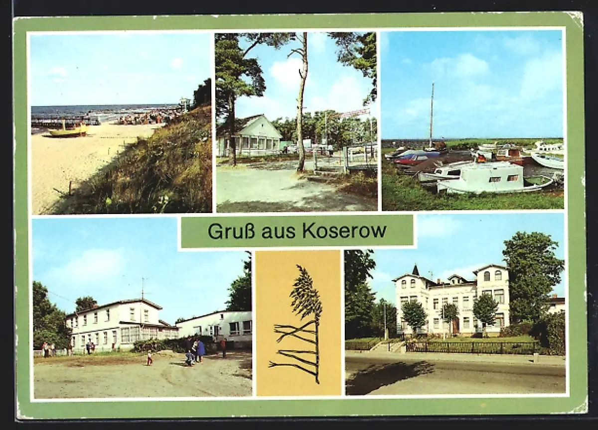 AK Koserow, Strand, Campingplatz-Anmeldung, Bootshafen am Achterwasser