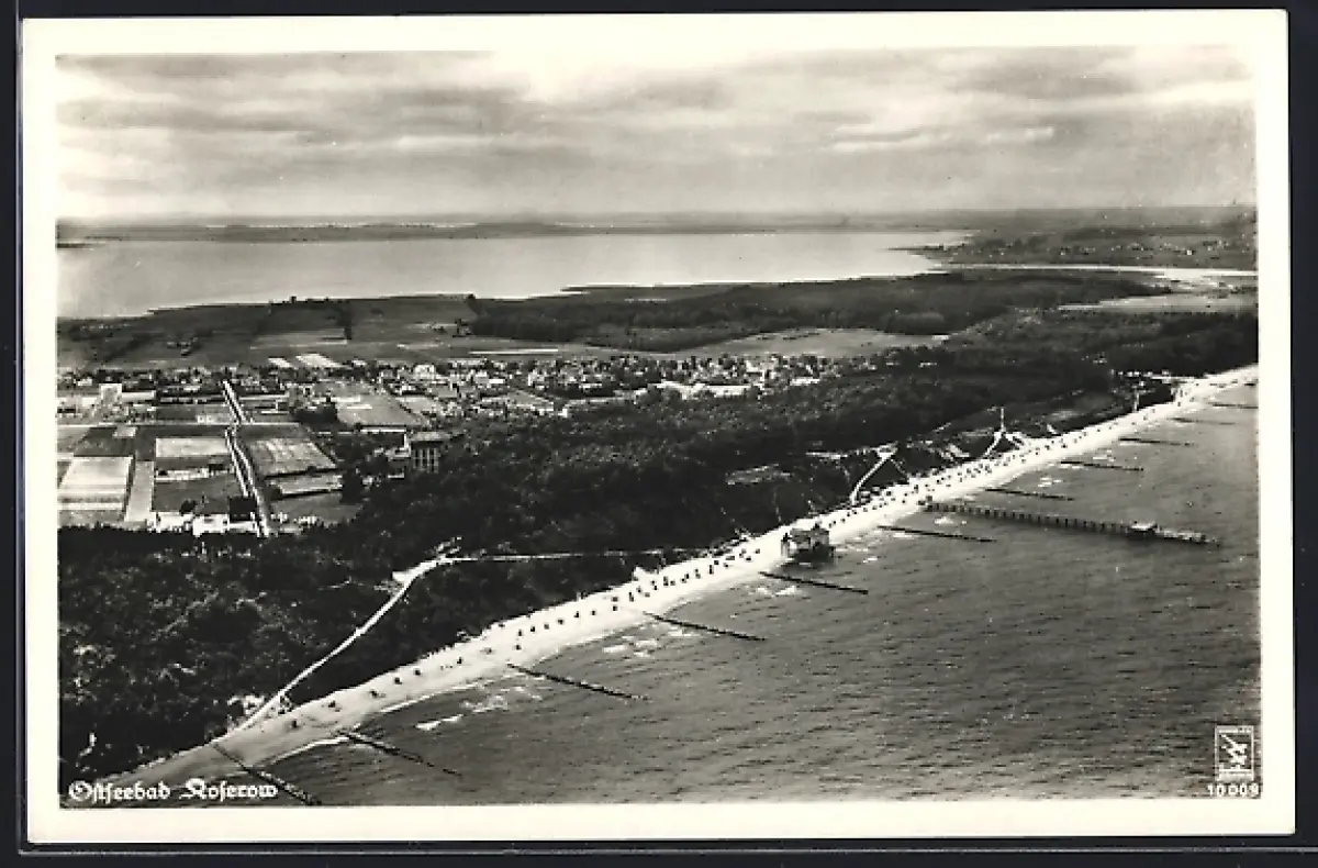 AK Koserow, Strand, Seebrücke, Luftaufnahme