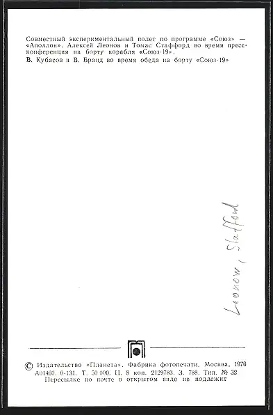 AK Kosmonaut Leonow und Astronaut Stafford in der Raumkapsel, Raumfahrt