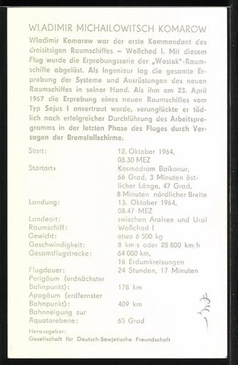AK Kosmonaut Wladimir Michailowitsch Komarow, Kommandant Wosschod I, Raumfahrt