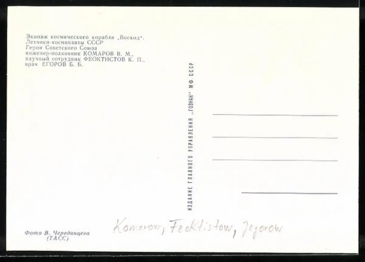 AK Kosmonauten Komarow, Feoktistow, Jegorow, Raumfahrt