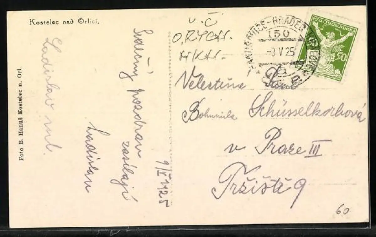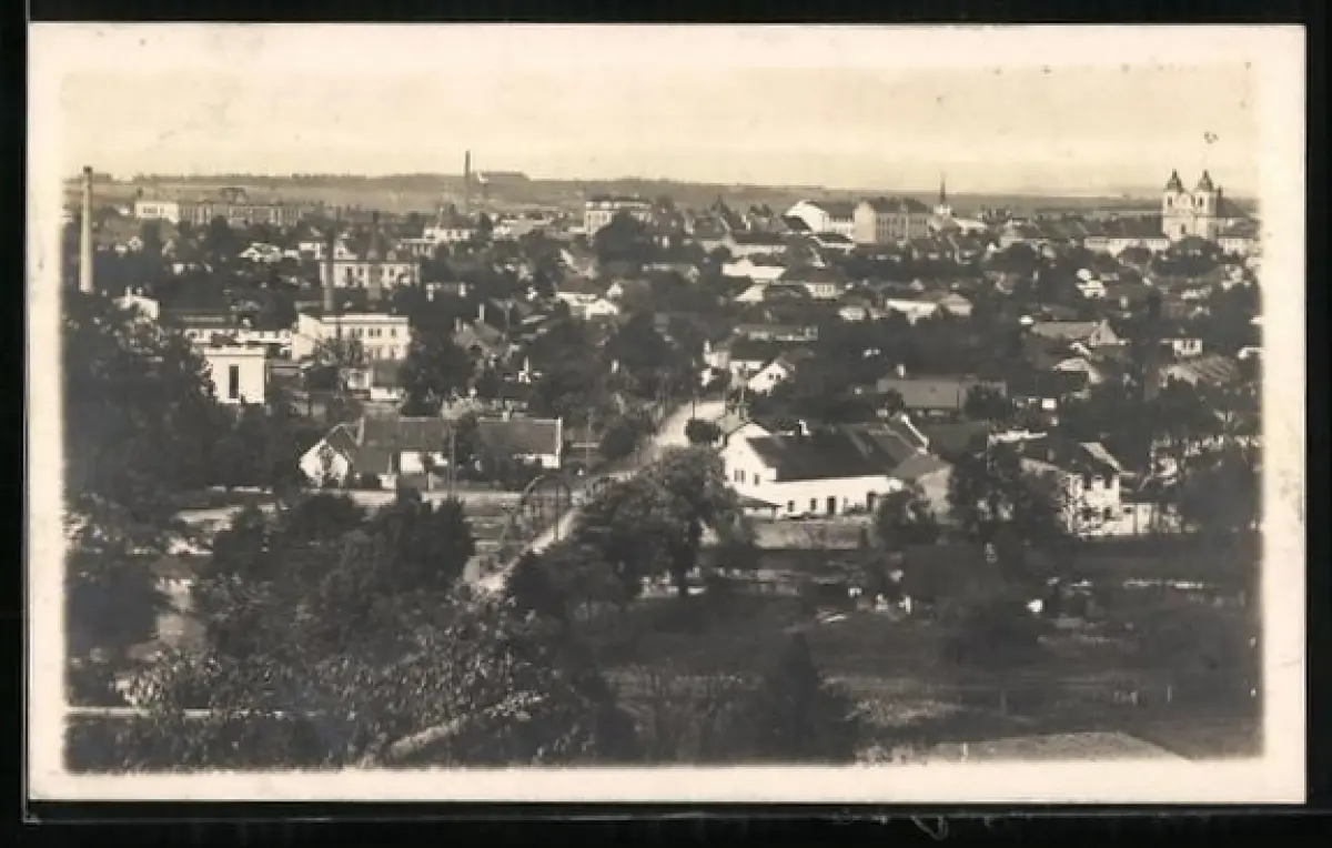 AK Kostelec na Orlicí, Panorama mit Strassenpartie