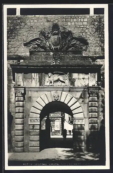 AK Kotor / Cattaro, Gradska Vrata, Blick durch Tor auf Hotel Puhalovic, 1927