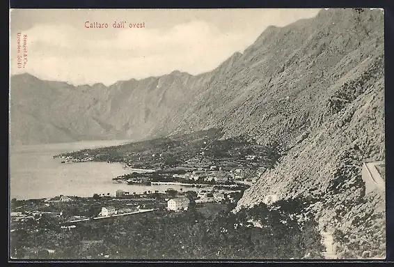 AK Kotor / Cattaro, Ortsansicht mit Gewässer und Bergen