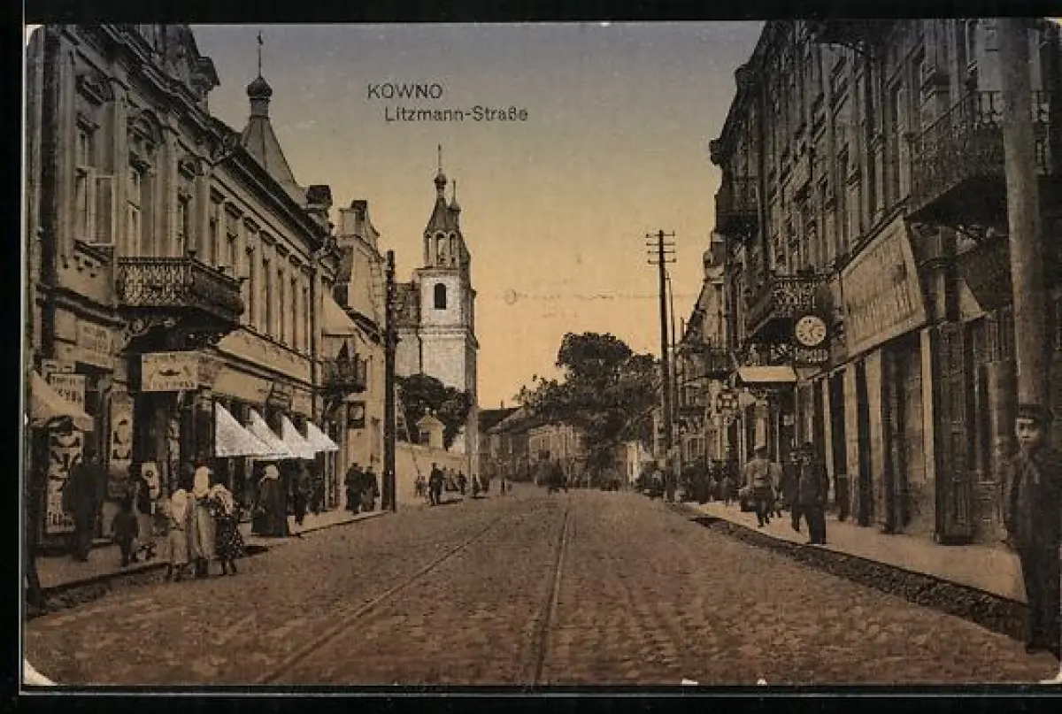 AK Kowno, Litzmann-Strasse mit Blick zur Kirche