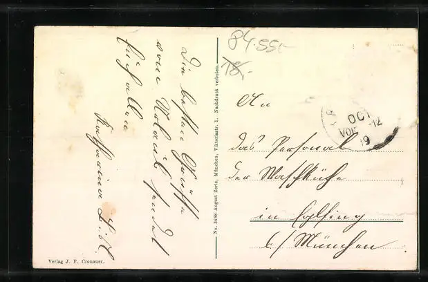 alte Ansichtskarte, gelaufen, Briefmarke entfernt, rückseitig Oberflächenschaden, guter Zustand