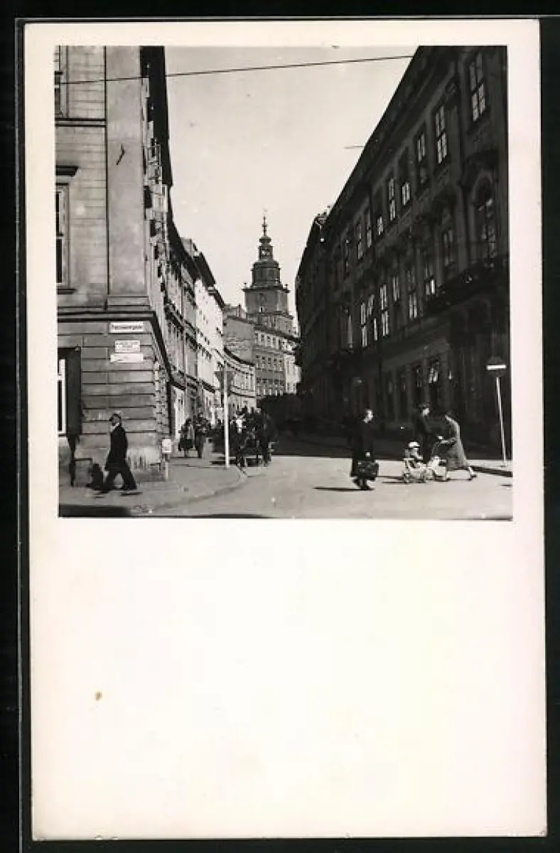 AK Krakau, Franziskanergasse, Strassenecke mit Turmblick