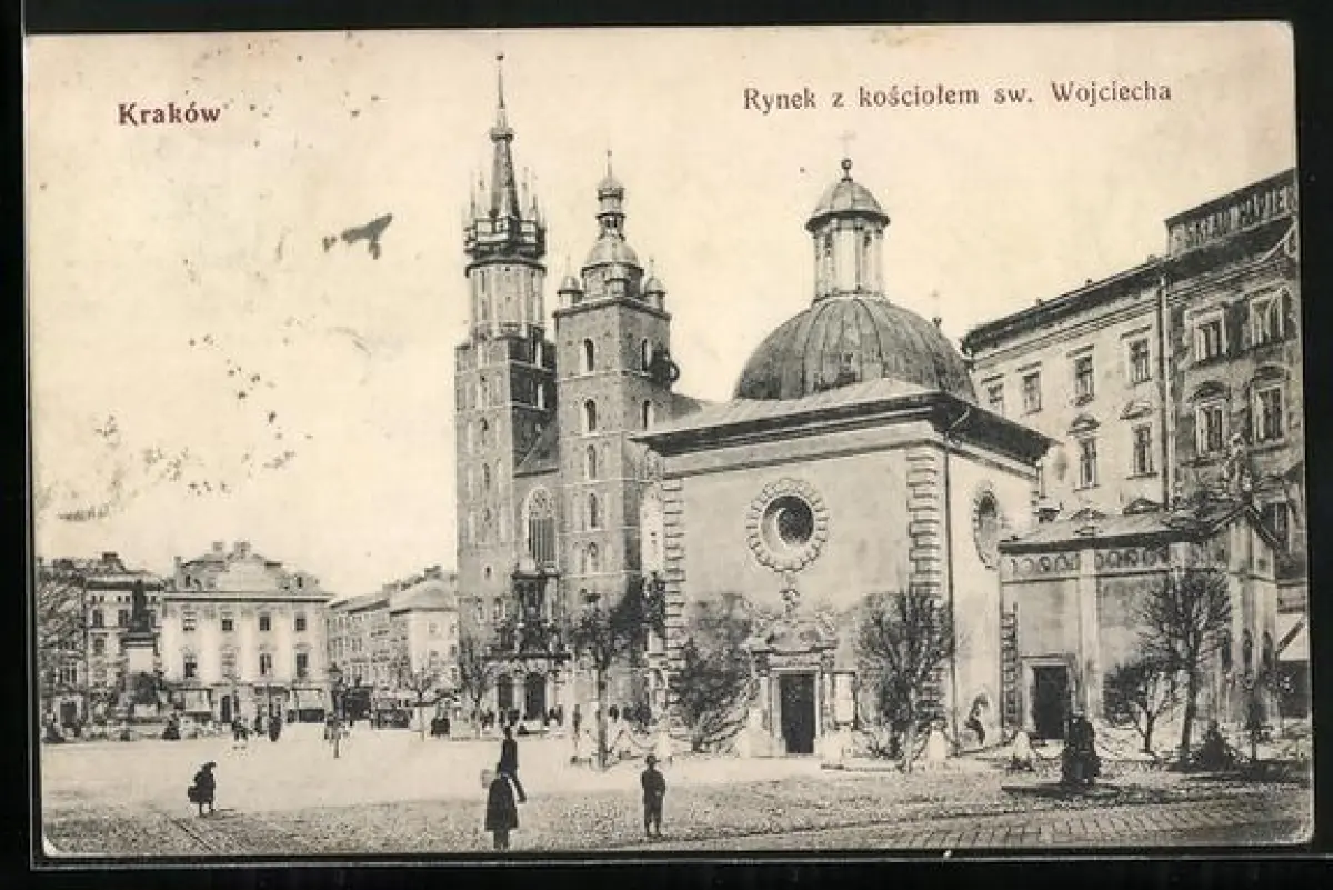 AK Krakow, Rynek z kosciolem sw Wojciecha