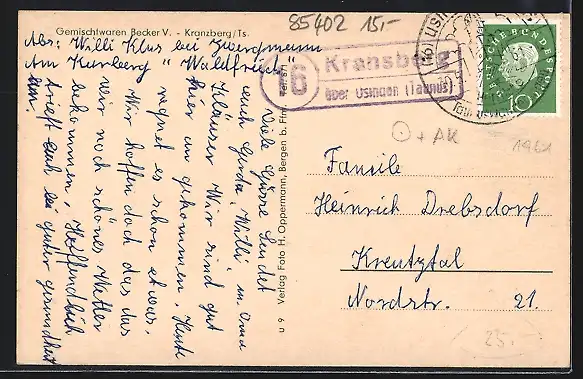 AK Kranzberg /Taunus, Gemischtwaren von Becker V., Ortsansicht