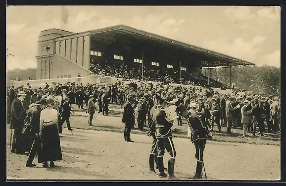AK Krefeld, Rennbahn, Publikum und Tribüne, Soldaten