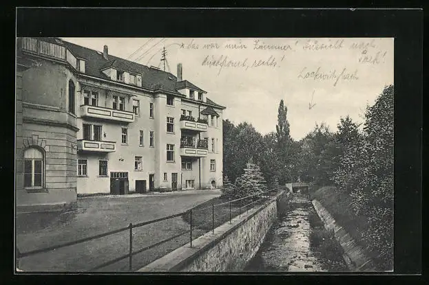 AK Kreischa, Hauptgebebäude des Sanatoriums, Rückansicht