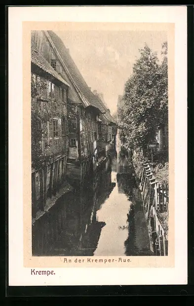 AK Krempe, alte Häuser an der Kremper Aue
