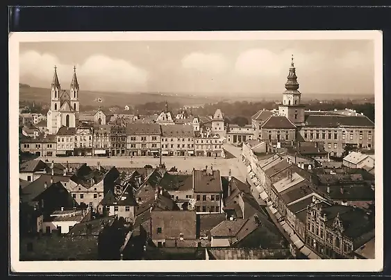 AK Kremsier, Ortsansicht mit Kirche aus der Vogelschau