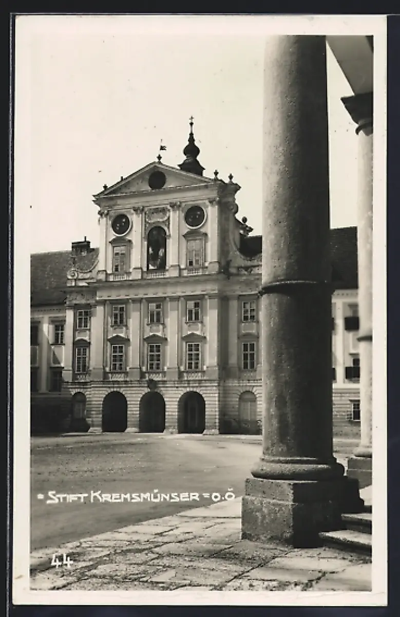 AK Kremsmünster /O. Ö., Stift mit Strassenpartie