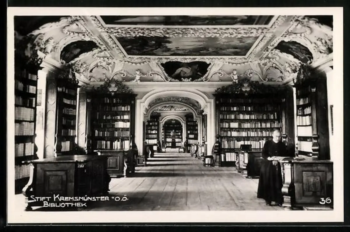 AK Kremsmünster, Stift Kremsmünster, Bibliothek, Innenansicht