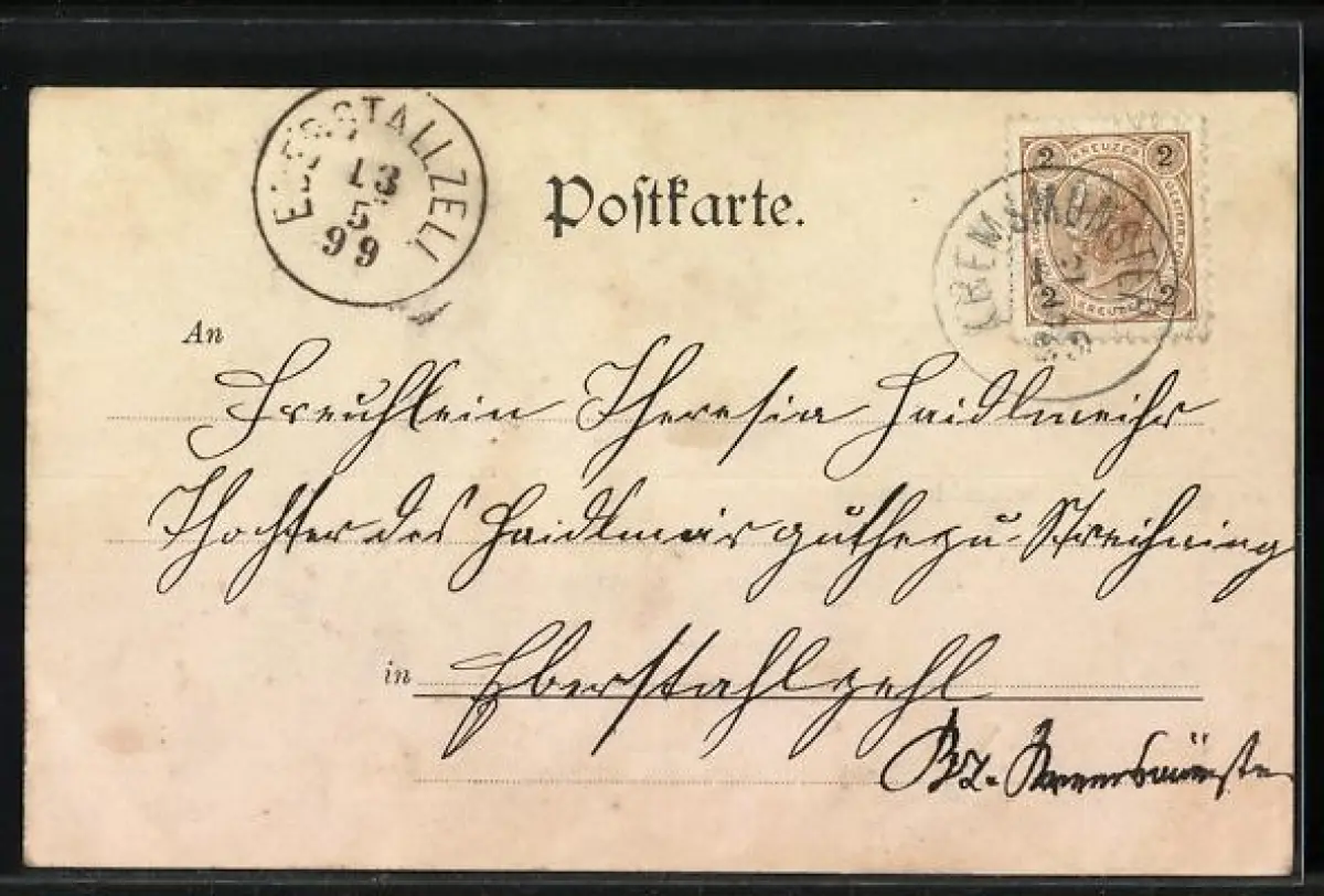alte Ansichtskarte, gelaufen 1899, guter Zustand