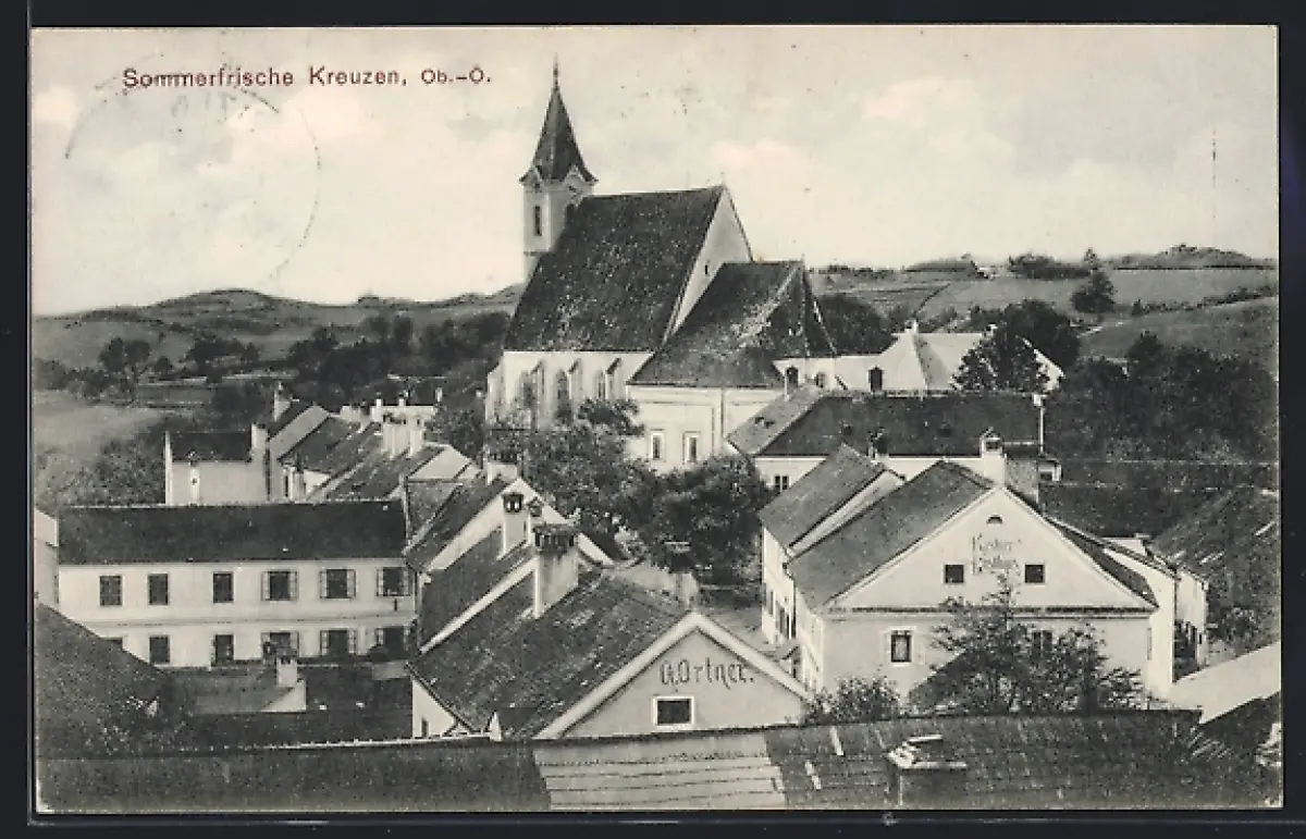 AK Kreuzen /Ob.-Ö., Ortspartie mit Kirche