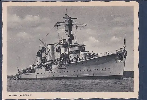 AK Kreuzer Karlsruhe Geschwindigkeit 32 Seemeilen Länge 169 m Breite 15,2 m Tiefgang 5,4 m Brutto Reg.-Tons 6000, nicht gelaufen von ca. 1940